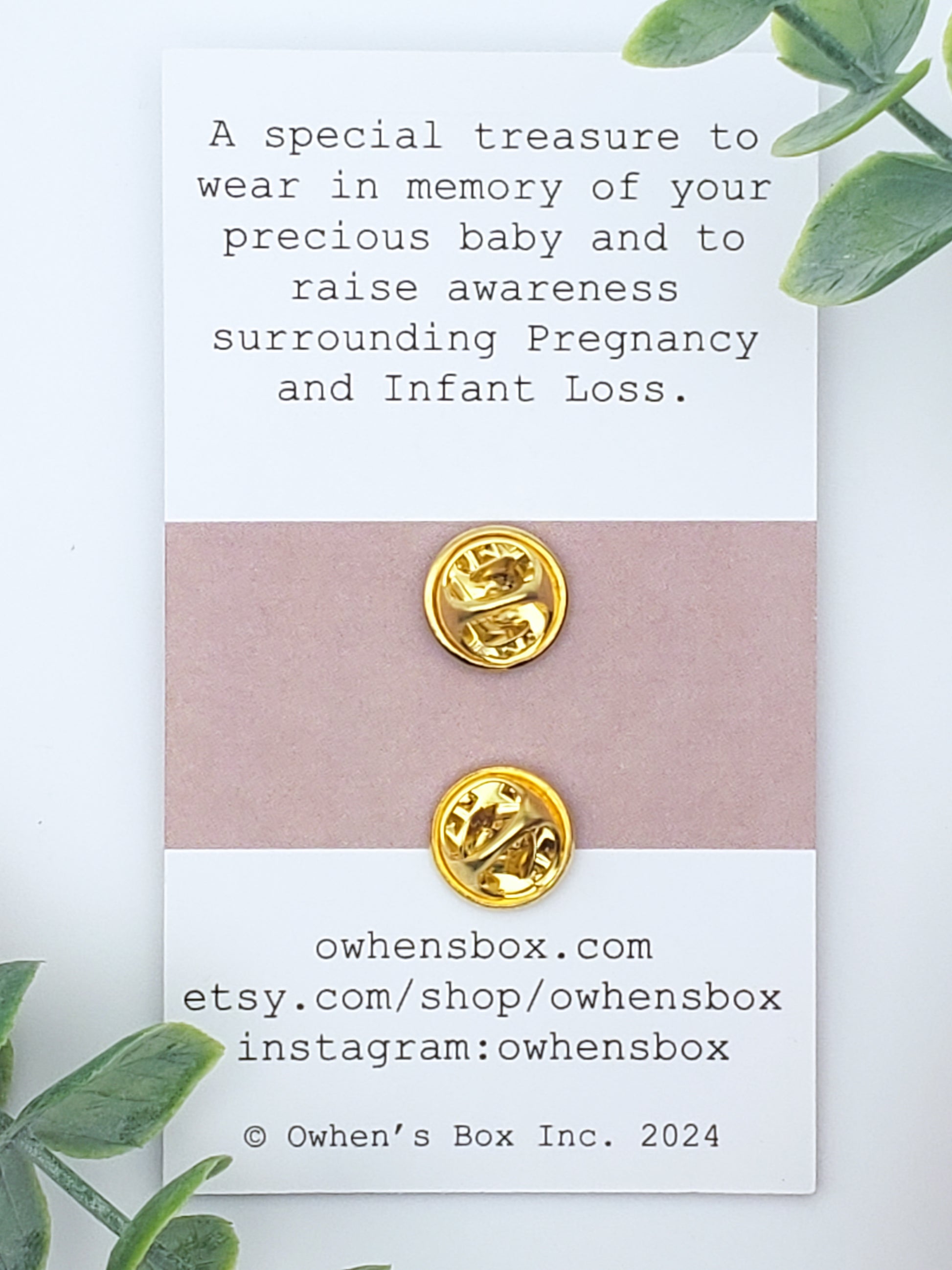 This Custom 1.5 Inch metal enamel pin is a unique and detailed way to remember the loss of a baby and raise awareness surrounding Pregnancy and Infant Loss.
